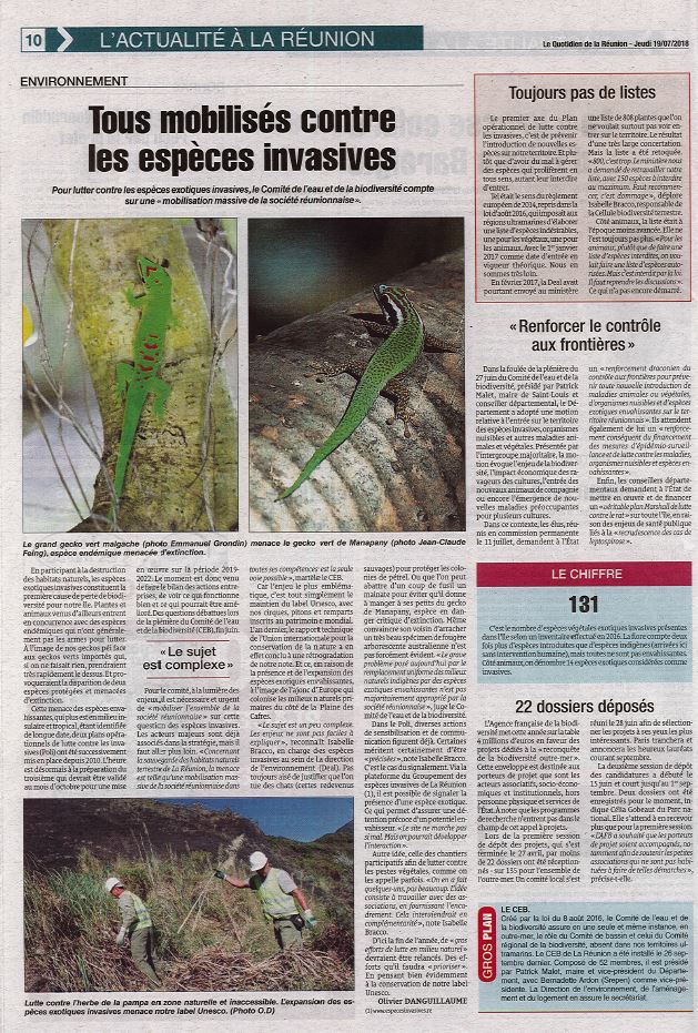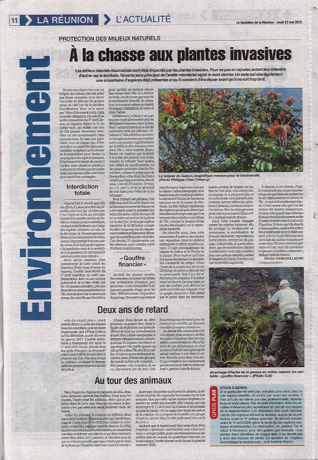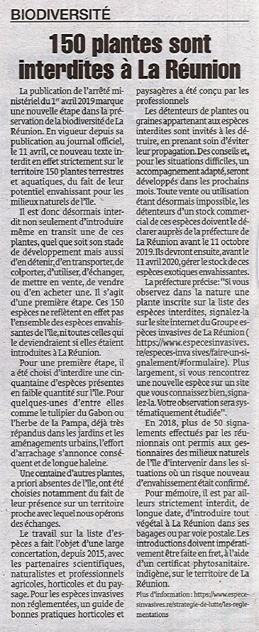 La publication de l’arrêté ministériel du 1er avril 2019 marque une nouvelle étape dans la préservation de la biodiversité de La Réunion. En vigueur depuis sa publication au journal officiel, le 11 avril, ce nouveau texte interdit en effet strictement sur le territoire 150 plantes terrestres et aquatiques, du fait de leur potentiel envahissant pour […]