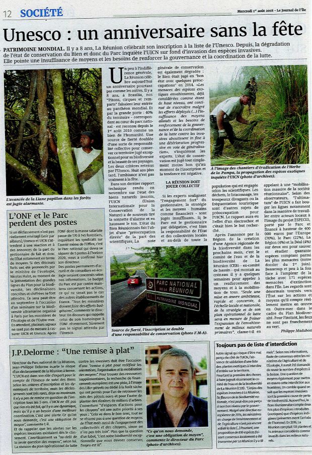 PATRIMOINE MONDIAL. Il y a 8 ans, La Réunion célébrait son inscription à la liste de l’Unesco. Depuis, la dégradation de l’état de conservation du Bien et donc du Parc inquiète l’UICN sur fond d’invasion des espèces invasives. Elle pointe une insuffisance de moyens et les besoins de renforcer la gouvernance et la coordination de […]
