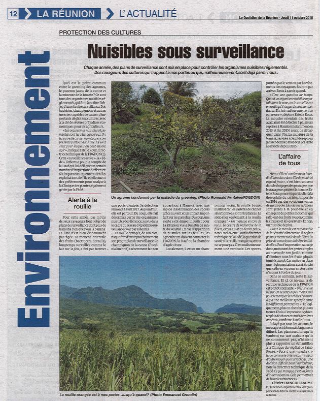 Quel est le point commun entre le greening des agrumes, le puceron jaune de la canne et la mineuse de la tomate ? Ce sont tous des organismes nuisibles réglementés, qui font à ce titre l’objet d’une étroite surveillance. Des bactéries, champignons et autres insectes capables de causer d’importants dégâts aux cultures, avec à la […]