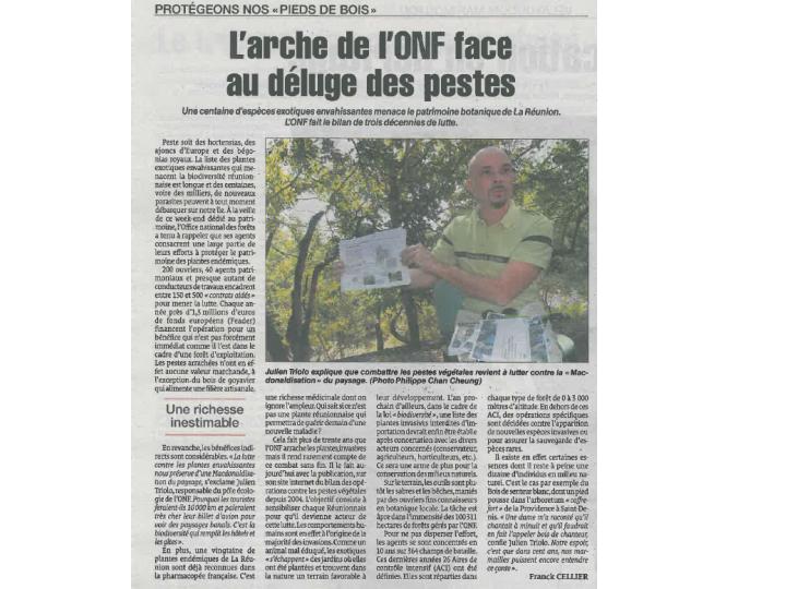 Plus d’une centaine d’espèce envahissantes menacent la biodiversité réunionnaise. L’ONF affine sa stratégie grâce à l’expérience accumulée et si le combat est inégal, il réserve parfois de belle surprises comme la découverte dans la forêt de la Providence d’un unique spécimen de bois de chenille.