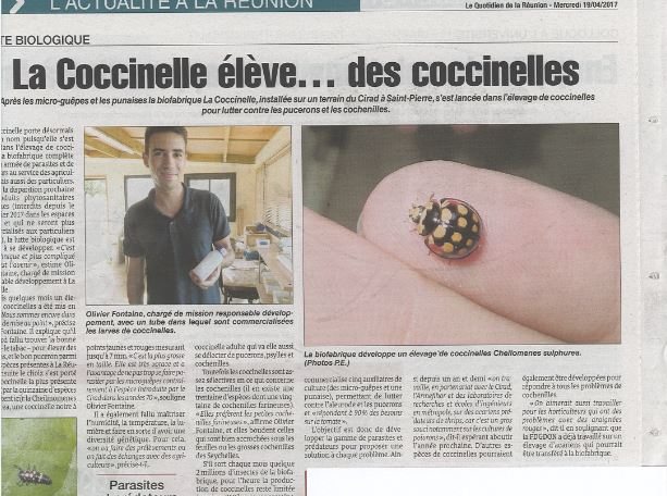 Après les micro-guêpes et les punaises la biofabrique La Coccinelle, installée sur un terrain du CIRAD à St Pierre, s’est lancée dans l’élevage de coccinelles pour lutter contre les pucerons et les cochenilles.