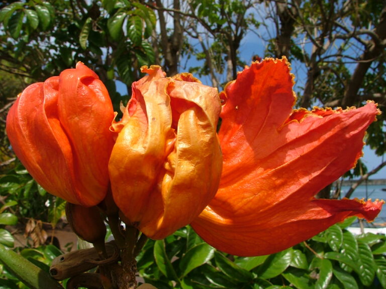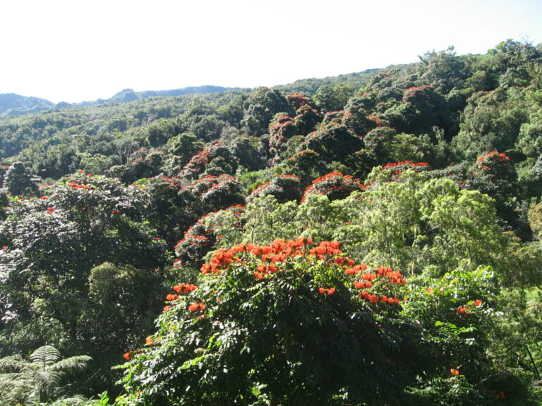 Le Tulipier du Gabon est maintenant considéré comme une espèce envahissante, même si son impact sur les écosystèmes naturels réunionnais n’est pour le moment pas aussi important qu’à Hawaï.