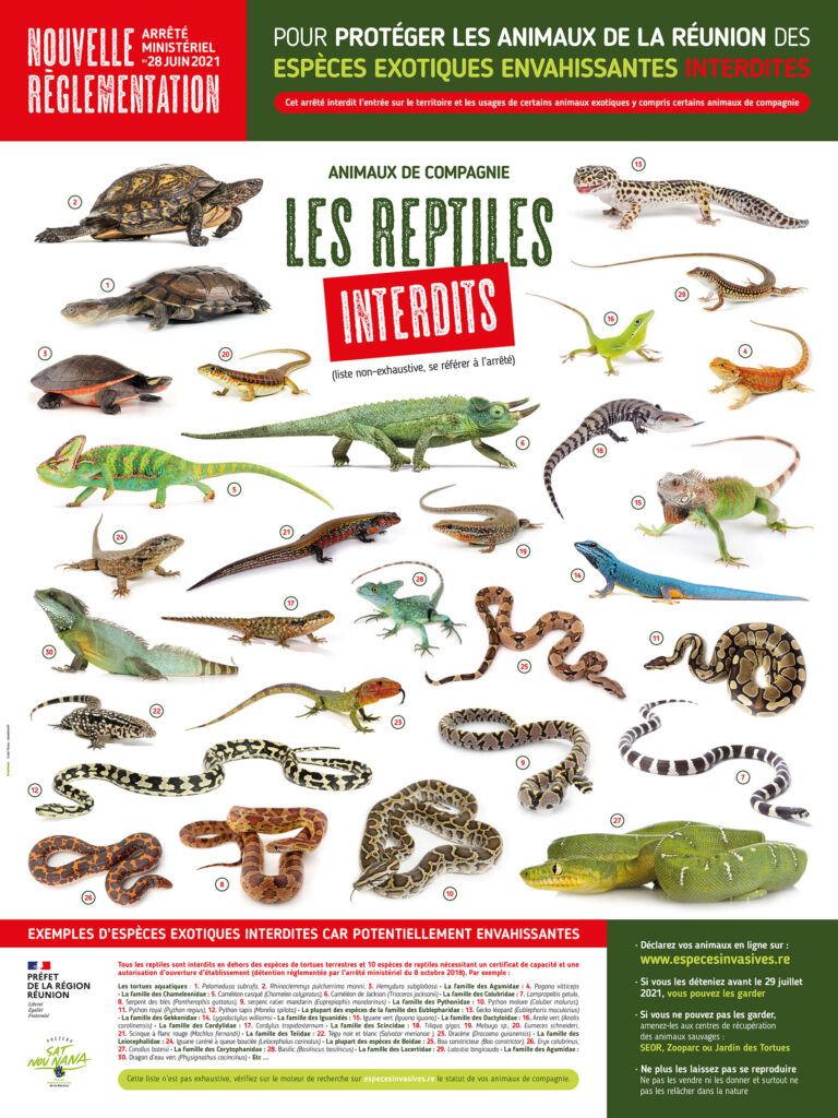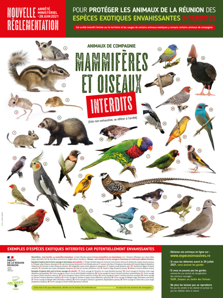 Il est une menace potentielle pour la faune et la flore originelle de La Réunion. Les espèces exotiques envahissantes sont la première cause d’extinction des espèces endémiques et indigènes de notre île. Par ailleurs, les lâcher ou les laisser divaguer est une infraction.